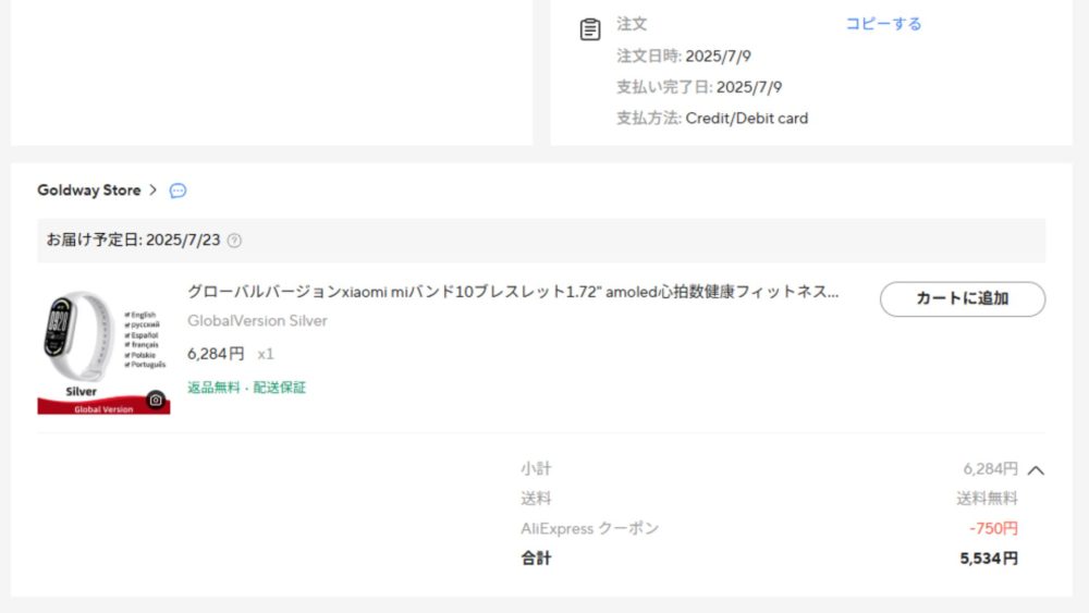 「今回のXiaomi Smart Band 10グローバル版をAliExpressで購入したのは、私にとって新しい発見と学びの連続でした!正直なところ、商品の到着までに時間がかかったり、追跡ステータスにちょっぴりドキドキしたりと、国内購入とは違う「海外通販ならではの醍醐味(リスク)」は確かにありました。