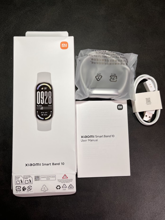 長い旅路を経て、ついに私の元へやってきたXiaomi Smart Band 10!外箱は少し角が潰れていましたが、緩衝材で梱包されており、中のスマートバンド本体や付属品に破損はありませんでした。